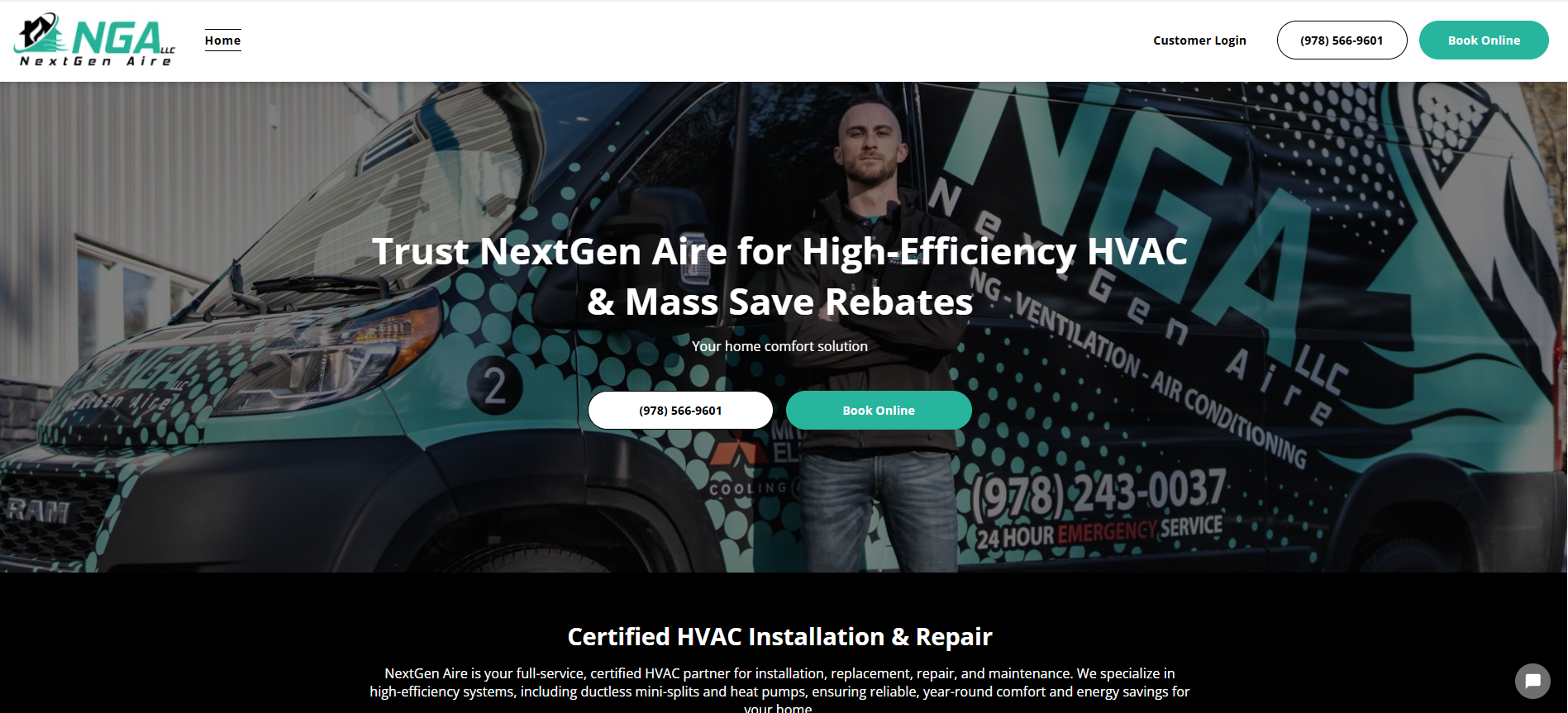 NextGen Aire has been serving the Essex and Seacoast regions of Massachusetts and Southern New Hampshire since 2016 with a simple mission: to educate homeowners and deliver honest, personalized HVAC solutions without the pressure. We are an elite HVAC company that dramatically improves our customers' comfort by providing top-level education, integrity, and honest solutions. Whether you need heating installation, AC replacement, ductless mini-splits, or indoor air quality improvements, we combine cutting-edge technology with transparent service to ensure you understand exactly what your home needs. We're also a Mass Save Approved Contractor, helping homeowners access energy efficiency incentives and rebates.